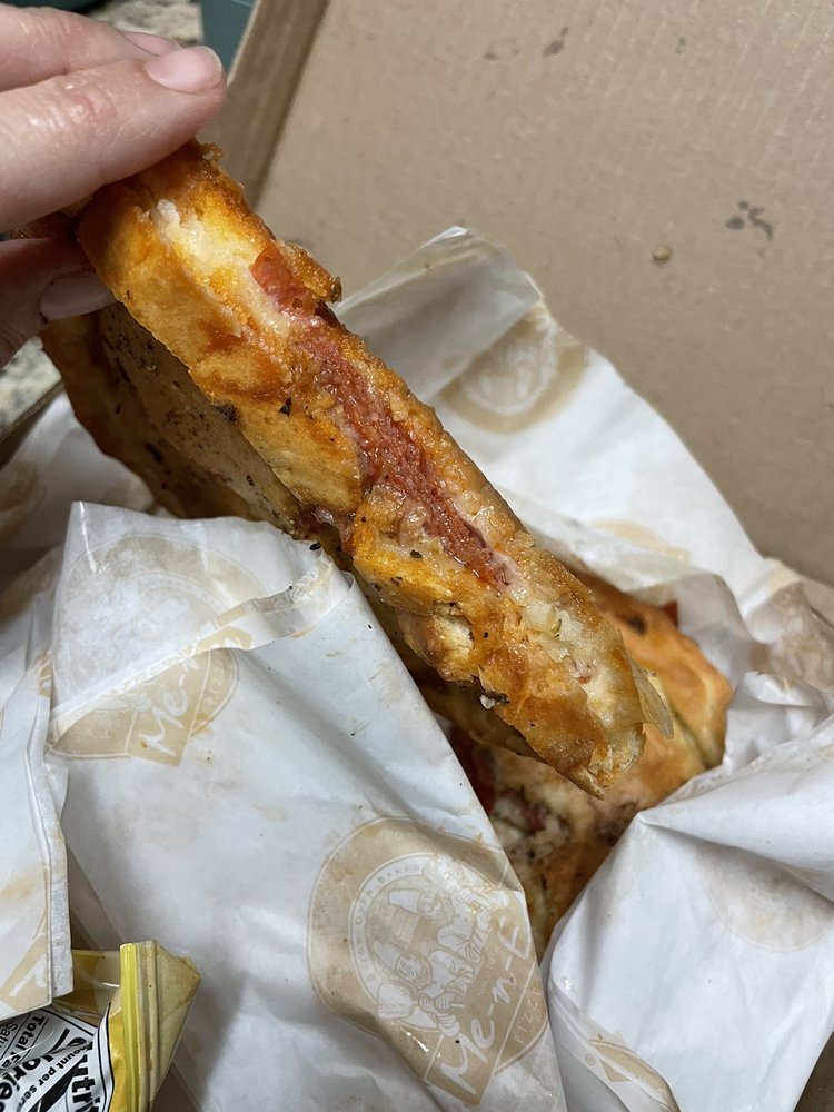Fresh cut bell peppers, tomatoes, red onions, black olives, our special blend of cheeses folded inside our pizza dough and baked until golden brown. calories.