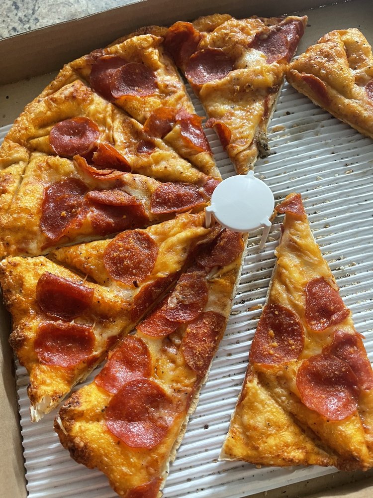 Our five-cheese blend, original red sauce, sliced salami, pepperoni, Canadian bacon, linguica, ground beef, sausage, sliced olives, mushrooms, sliced bell peppers.
